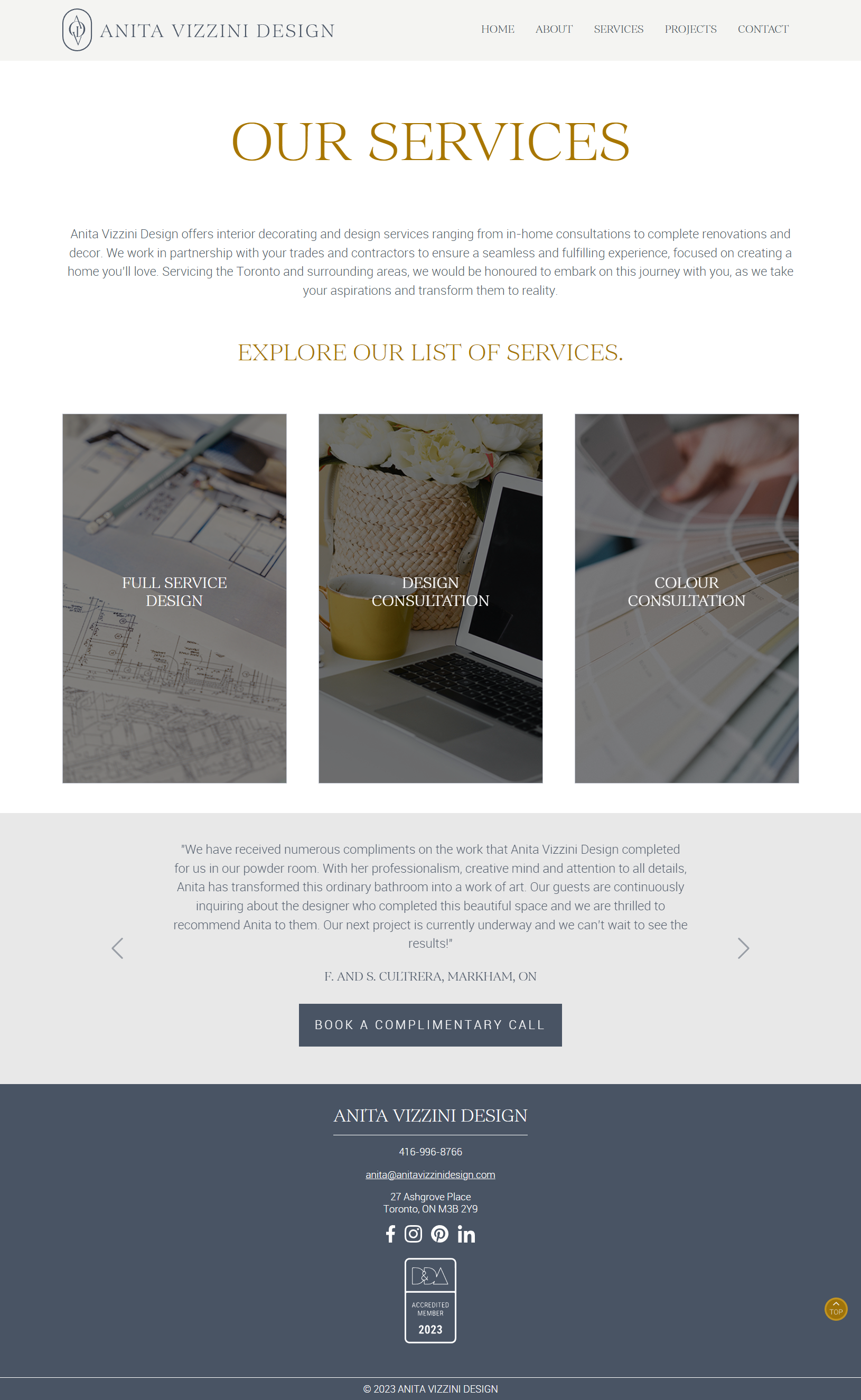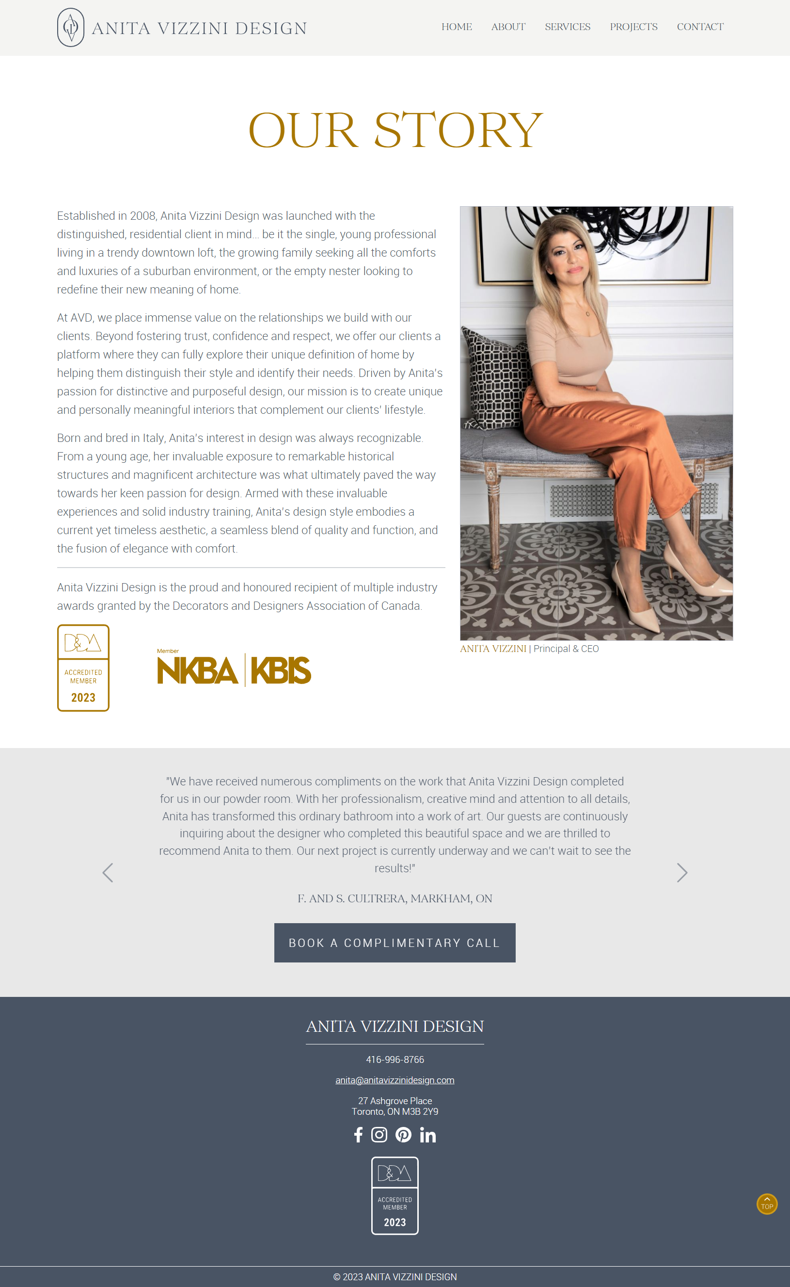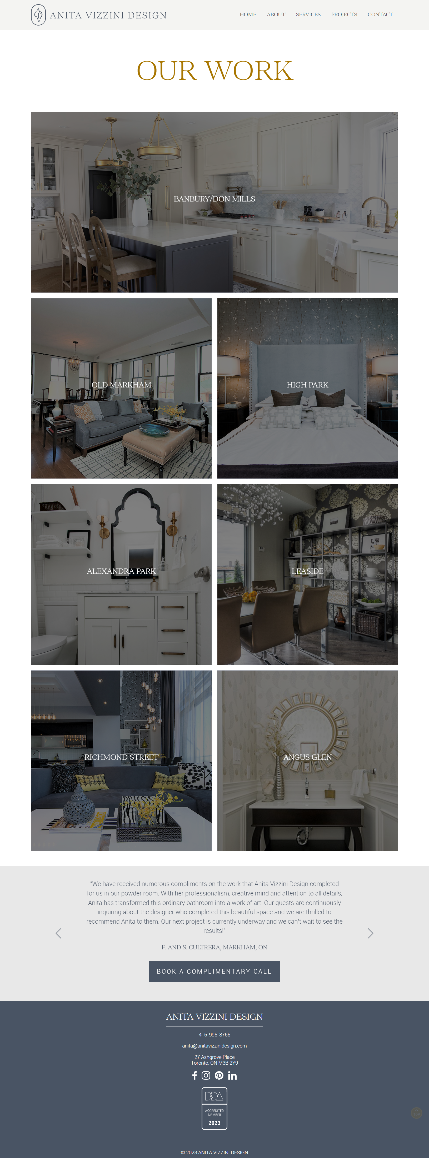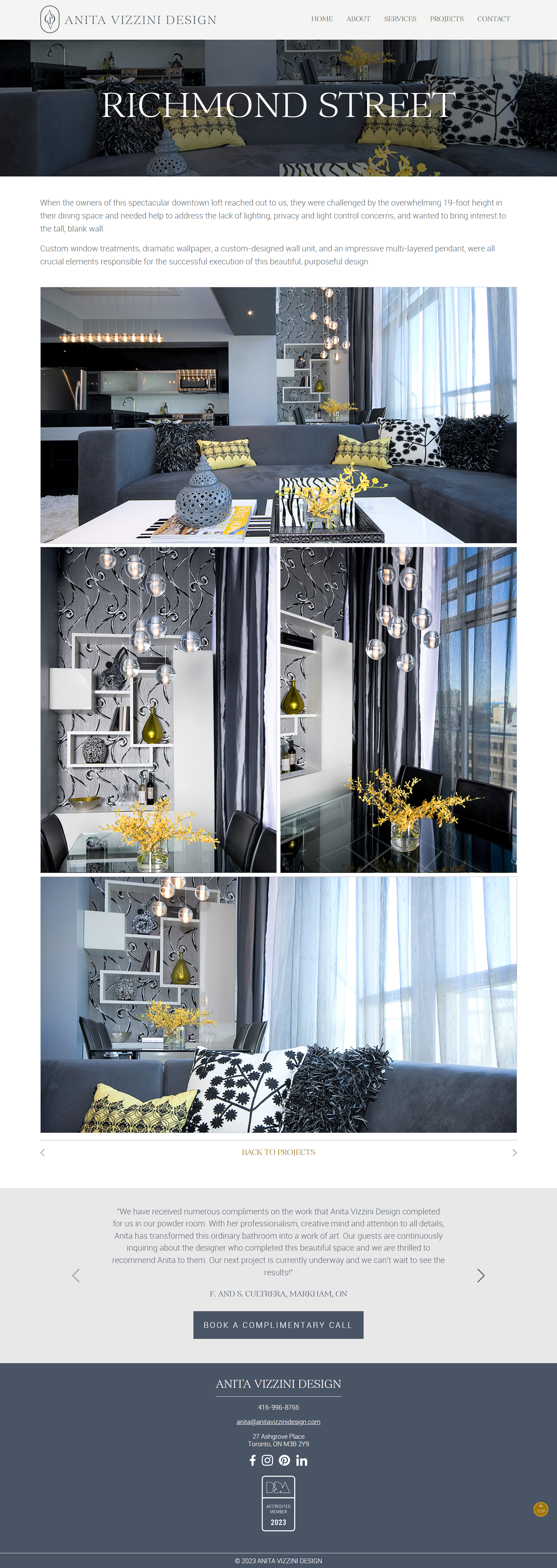 Website was created for an independent Interior Decorator operating in the Toronto area. The intent of the site was to showcase her projects she has worked on, along, with the various awards won for her skills.