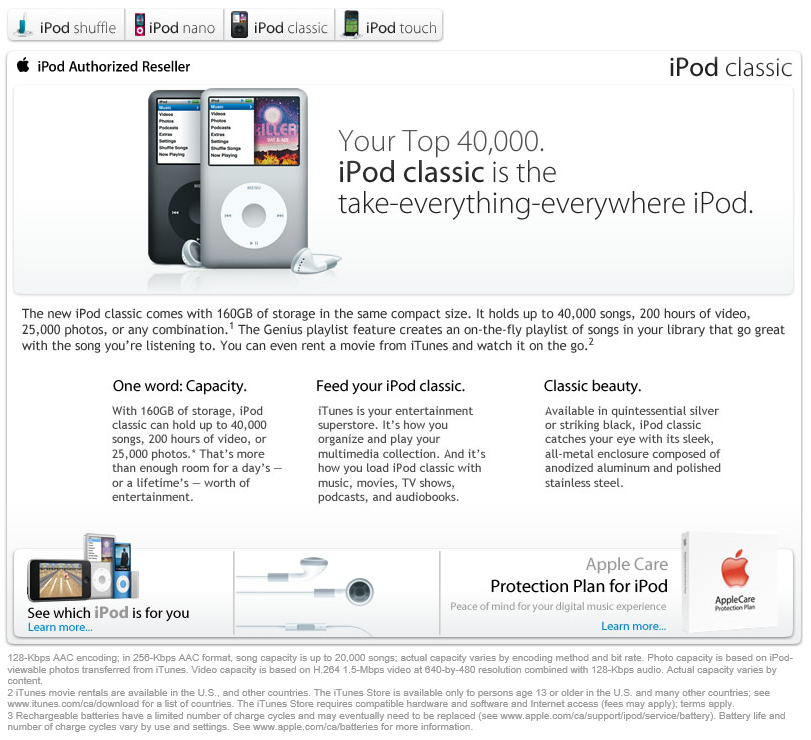 A microsite which was designed to advertise various Apple music products being offered in the Walmart stores.