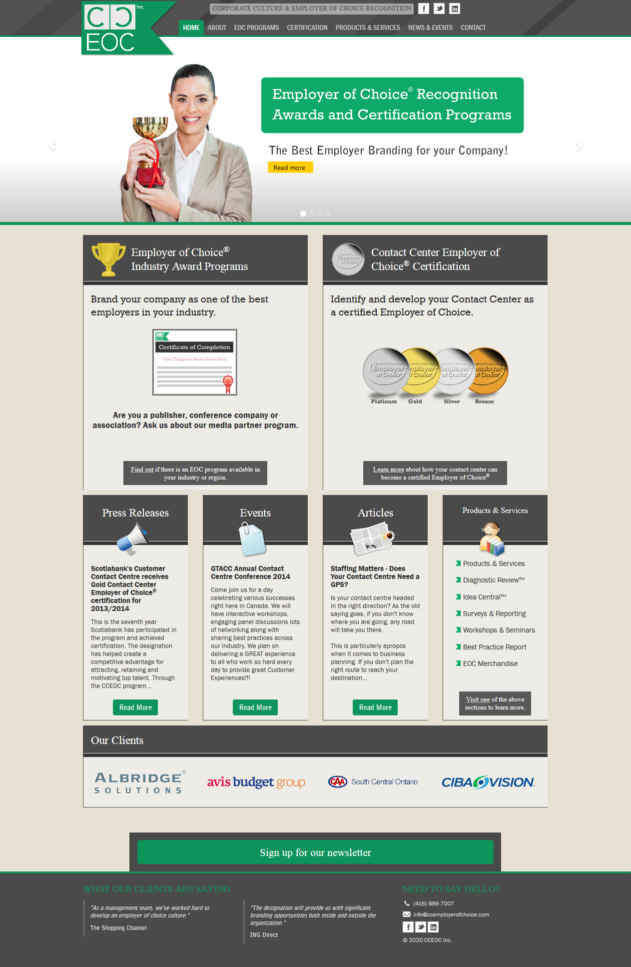 Independent business owner who is currently acting as a consultant for medium to large companies on how to improve the operation of their call centers. The CCEOC programs provide 4 levels of awards based on the performance of the call center.