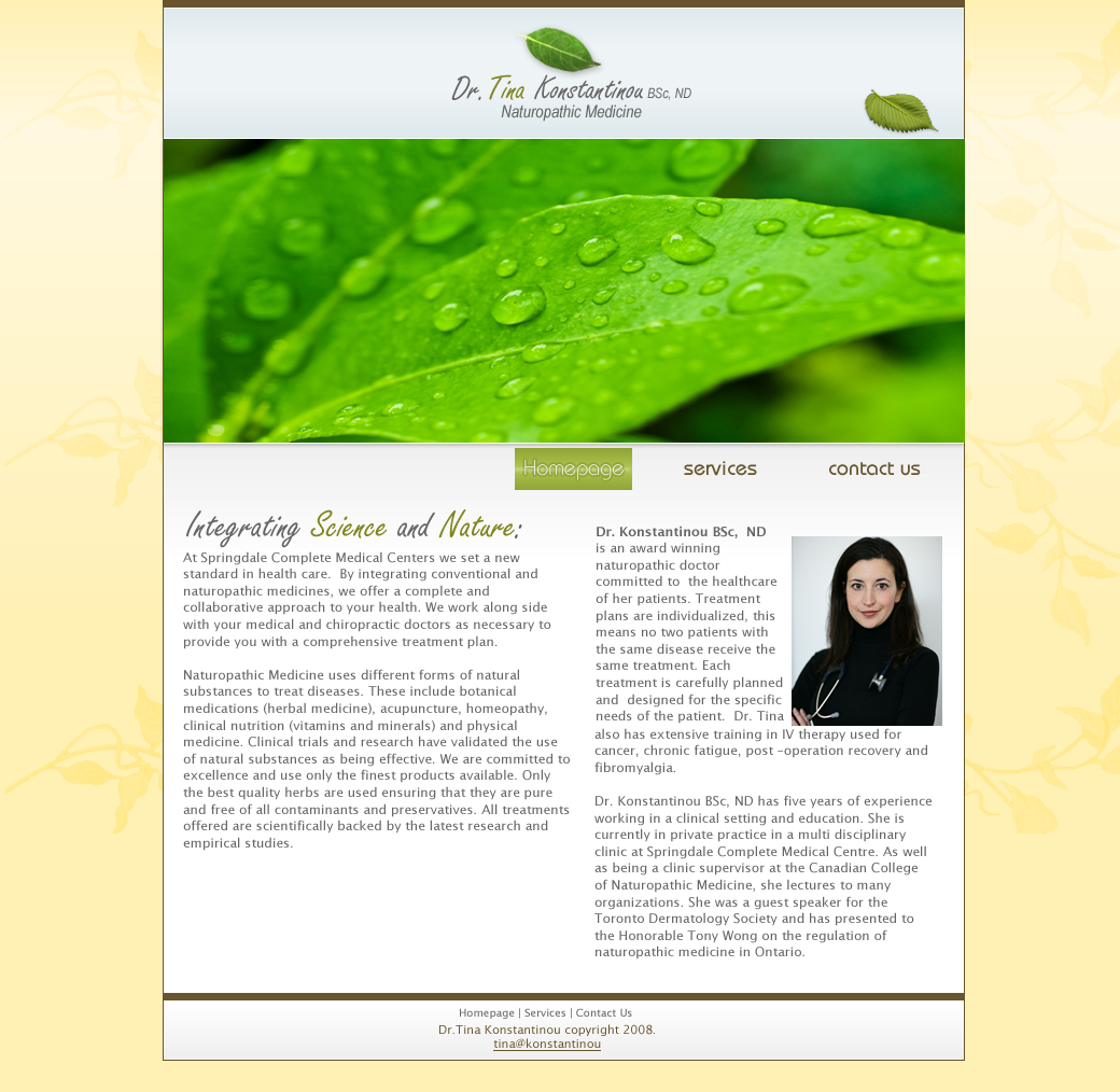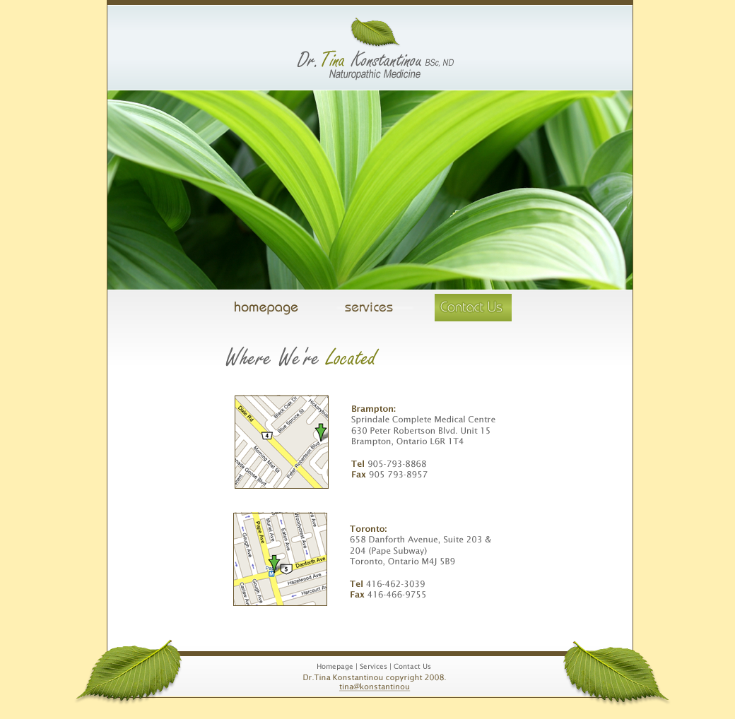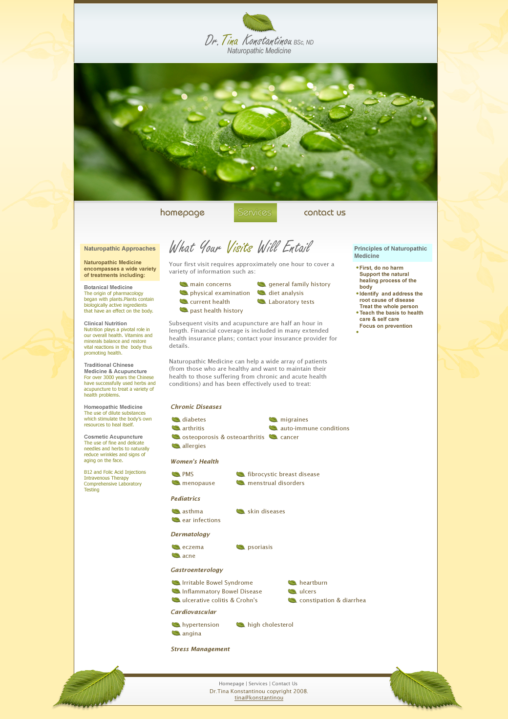 A website created for a Naturopathic doctor explaining her philosophies over Naturopathic healing of the body. The website also offers a detail list of services provided.