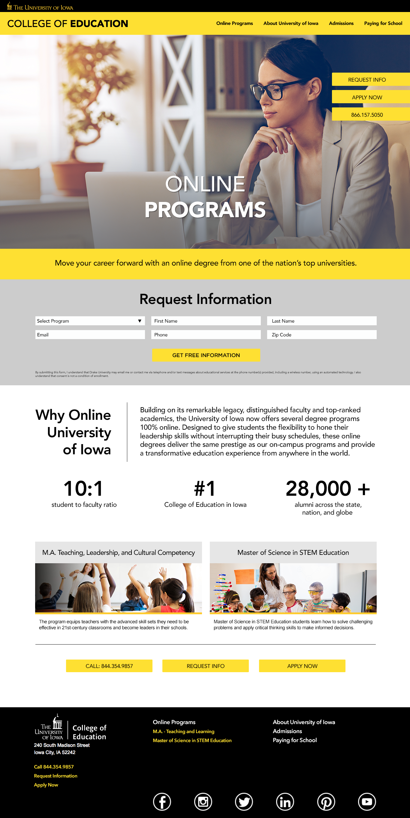 Screens for site redesign for the University of Iowa.This layout covers the desktop version.