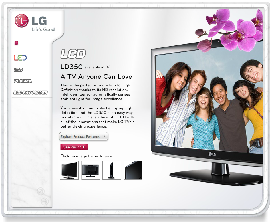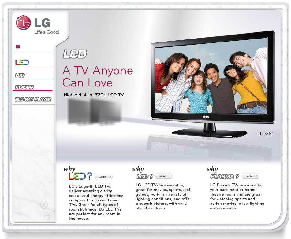 Flash based microsite promoting various consumer products relating to television and video. The site provides insight on how a consumer can build a custom theater using their product.